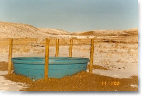 A spring-fed dam was deepened to increase its storage capacity and a solar water pumping system was installed to pump water to a nearby trough. This trough was connected with an underground pipeline to another trough several hundred feet away using a gravity flow system. These two water troughs provided water to draw cattle away from the creek.
