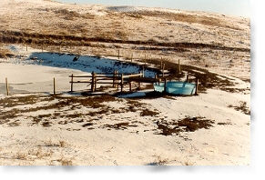 A water supply was not available on the upland tame pasture, so an underground pipeline was installed. The lowlands pasture was fenced off to form a fall grazing and spring lambing paddock.
